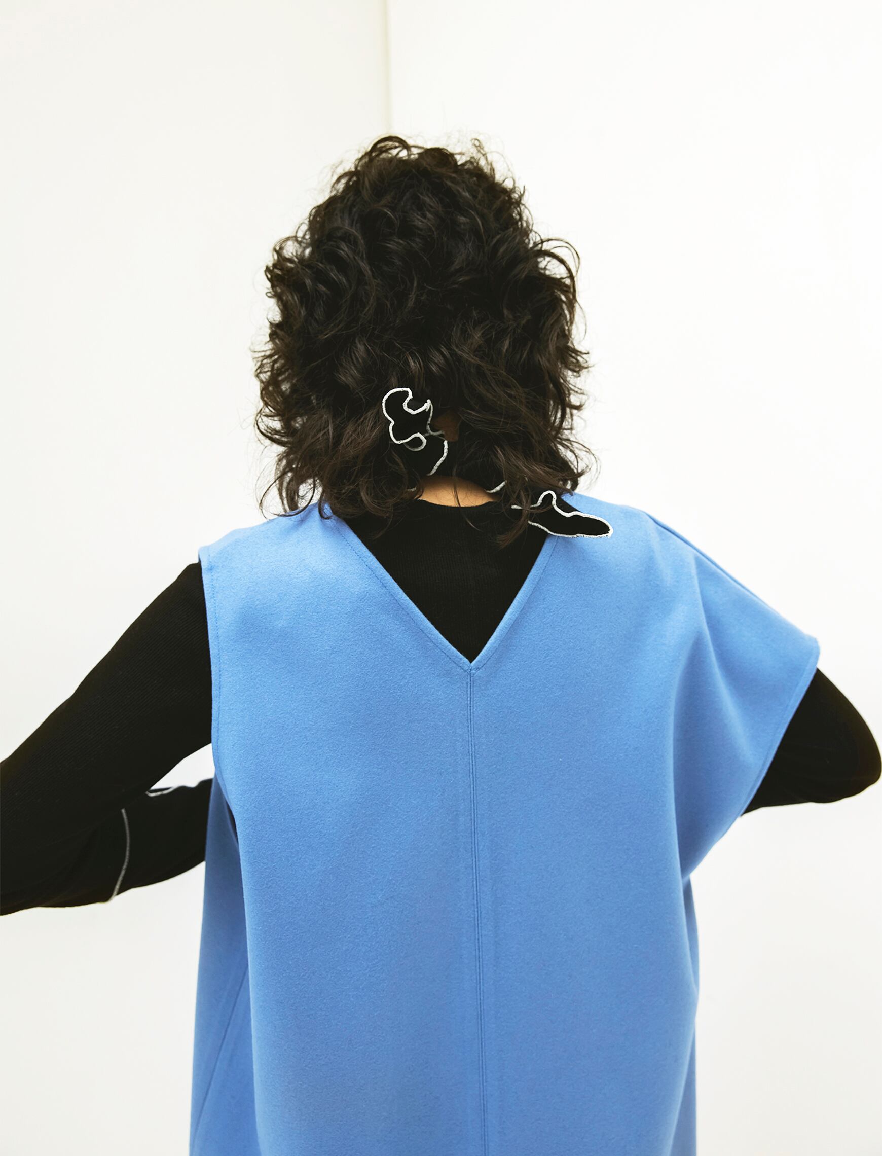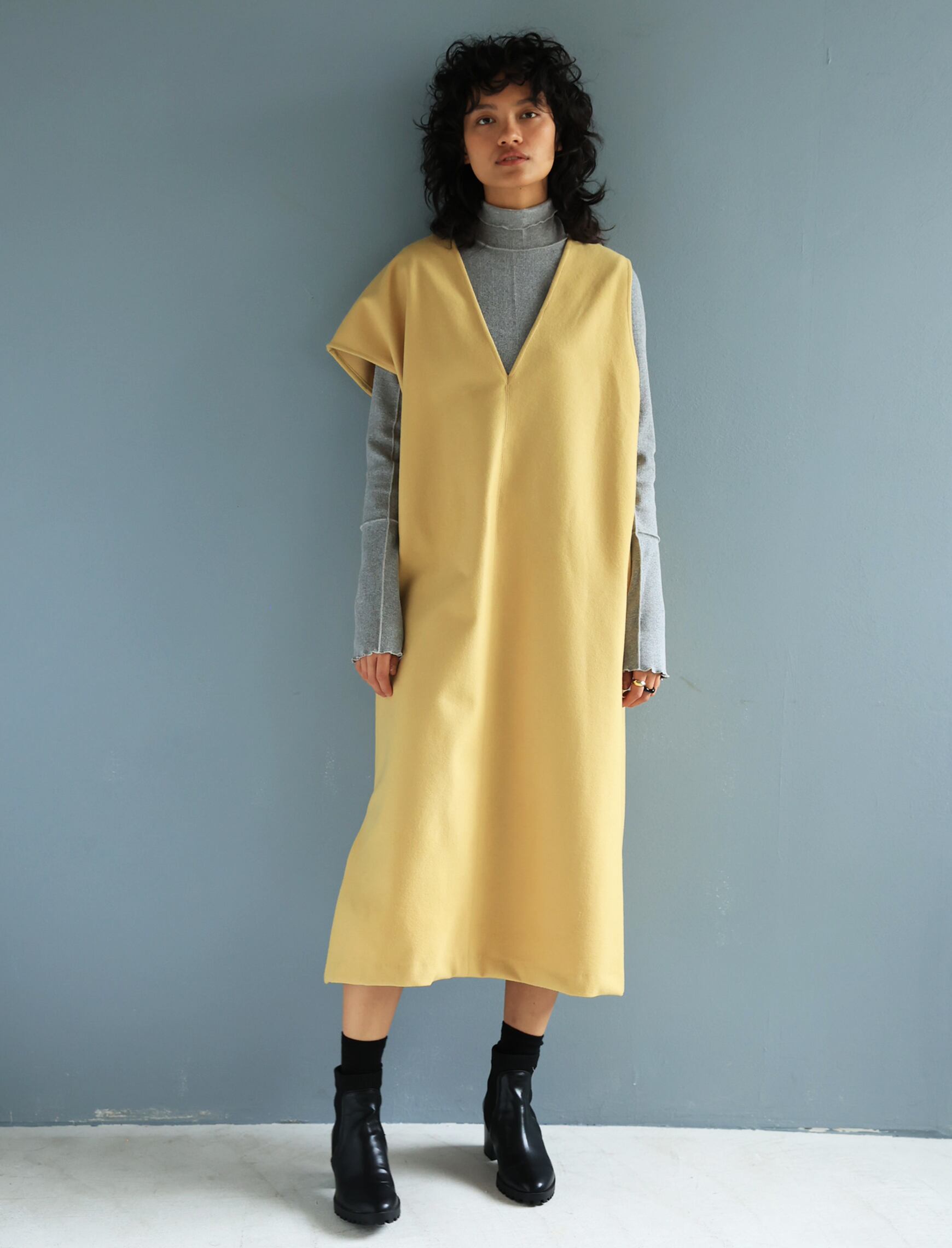 良質で軽量感のあるライトラムメルトンを使用しています。ニューイングランドラムは同じラムの中でも、生後8~12ヶ月の2度目の毛刈りをしたもののみを使用したこだわりの原料です。この原料には1度目の毛刈りのものよりも不純物が少なく良質で本来の膨らみ感、柔らかさ、上質な風合いが最大の特徴です。不純物が少ないの分原料の白度が高いので色の発色が良いのもポイントです。シンプルなフォルムの中に左右非対称な袖のデザインで遊び心を加えました。